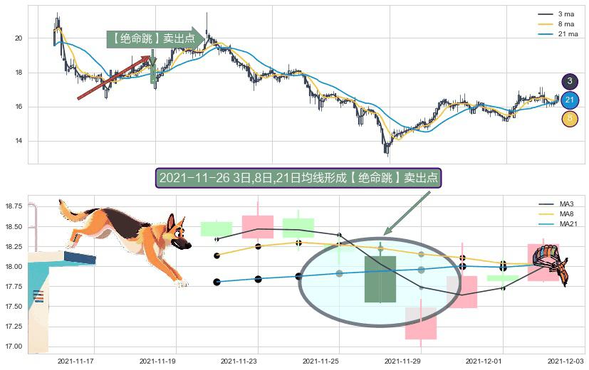 ⚀ 2021-11-26日显现 3日-8日-21日均线 【绝命跳】卖出点 看空信号,后市看跌,卖出