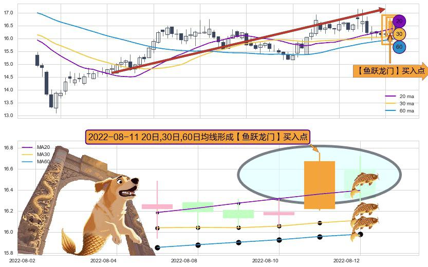 ⚀ 2022-08-11日显现 20日-30日-60日均线 【鱼跃龙门】买入点 看多信号,后市看涨,买入