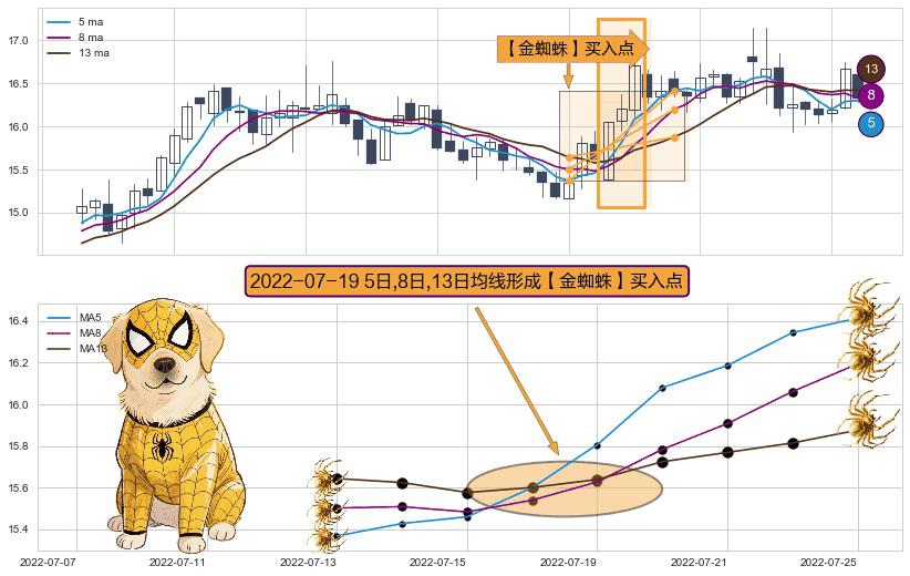 ⚀ 2022-07-19日显现 5日-8日-13日均线 【金蜘蛛】买入点 看多信号,后市看涨,买入