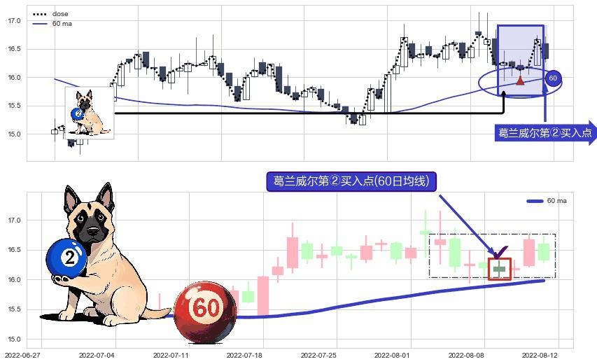 ⚀ 2022-08-09-日显现 葛兰威尔均线 60日均线 第②买入点 上升趋势的中继信号,后市看涨,买进信号