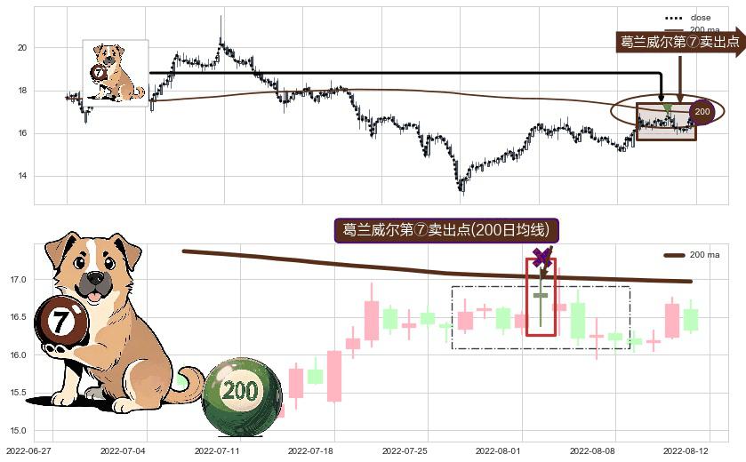 ⚀ 2022-08-02-日显现 葛兰威尔均线 200日均线 第⑦卖出点 下降趋势的中继信号,后市看跌,卖出信号