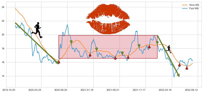 2022-01-20至2022-06-02 慢线与快线呈空头排列, 慢线与快线接触少,无缠绕