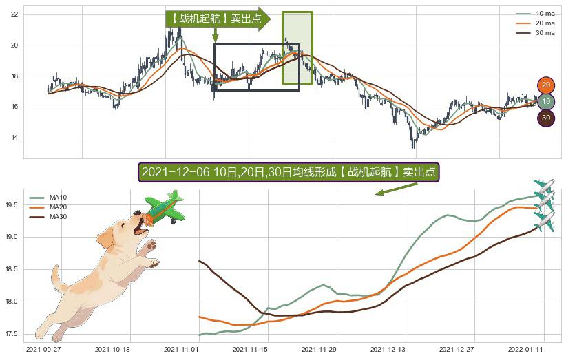 ⚀ 2021-11-01日-2022-01-10日显现 10日-20日-30日均线 【战机起航】卖出点 看空信号,后市看跌,卖出