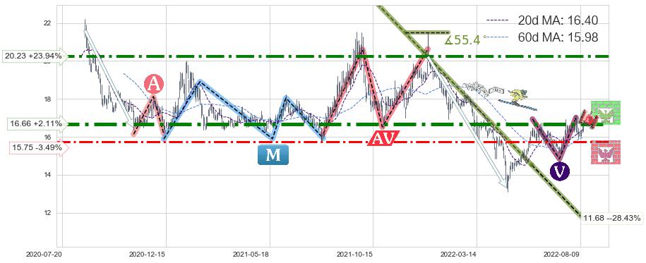 ♘ 阻力价格位16.66,可信任强度93.60%,距离最后交易2022-08-12形成的收盘价格16.32相差 +2.11%