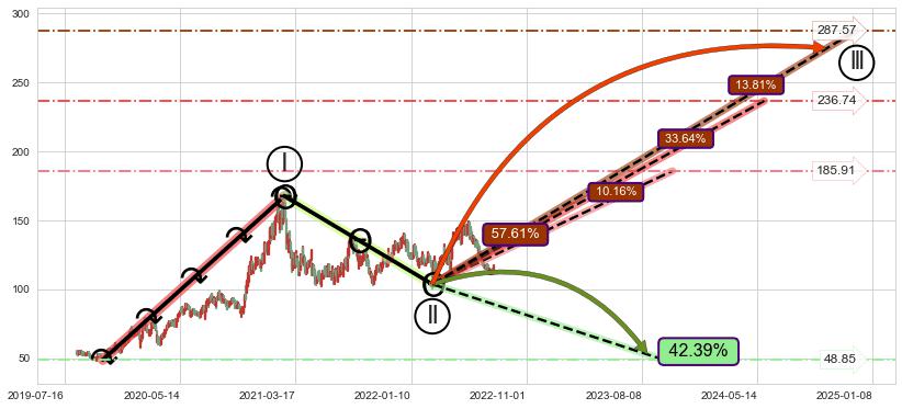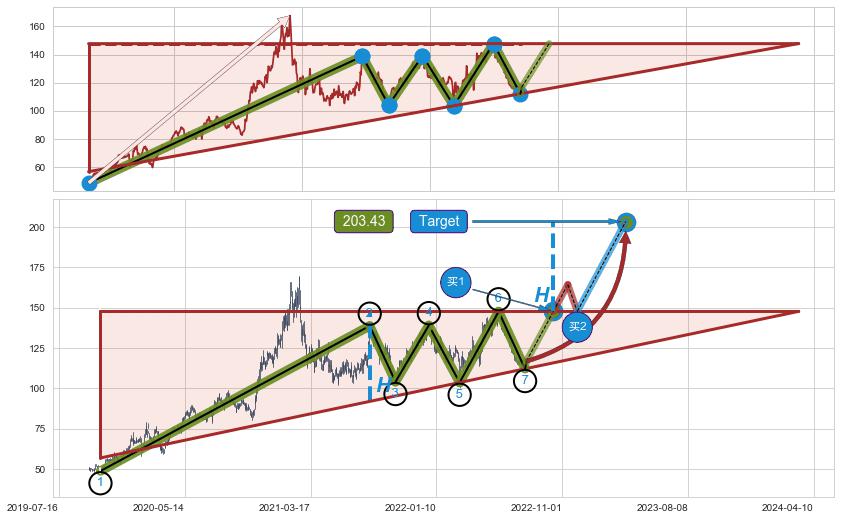 ➣ D点拟合预测价格78.67,距离最后交易收盘价格116.82相差 -32.65%