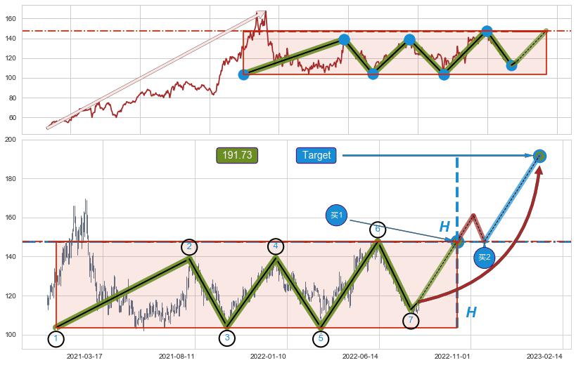 ➢ 【仅预测突破】最后价格:116.82与预测突破价格:147.70→【空间较大】后续最小【整理】第一目标价格→(2023-02-14: 191.73 )