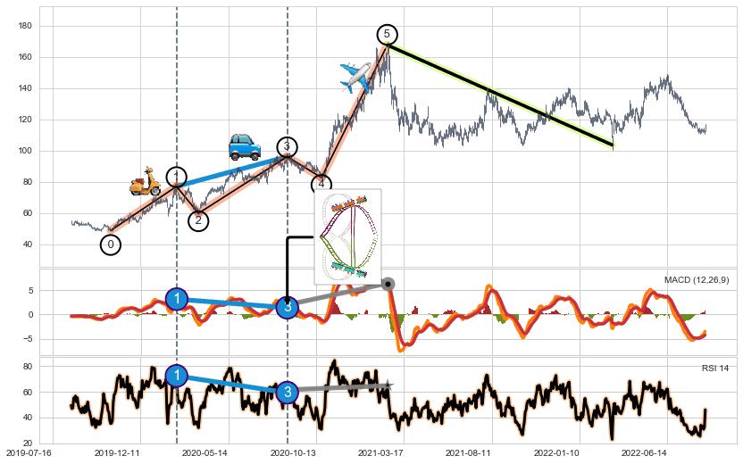 ➣ 第一, 三, 五浪上涨动能逐渐【增强变大】,趋势不断加固