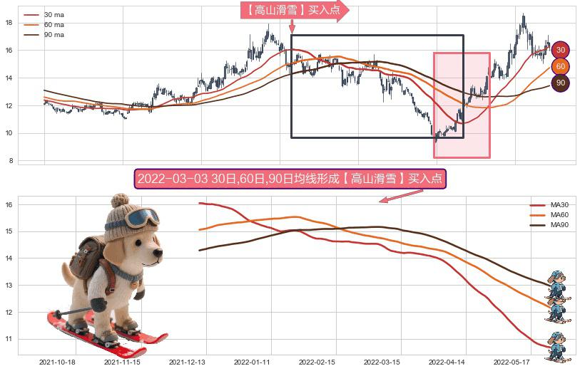 形态多维评估: ⚀ 2021-12-09日-2022-05-25日显现 30日-60日-90日均线 【高山滑雪】买入点 看多信号,后市看涨,买入