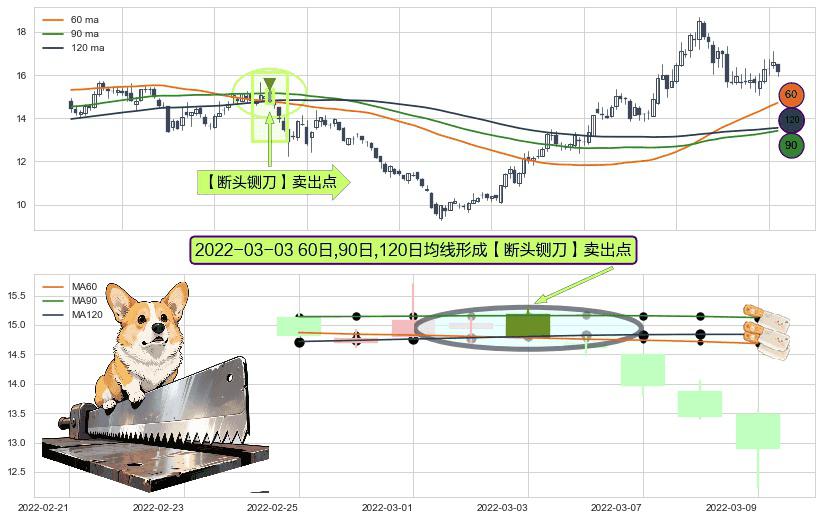 形态多维评估: ⚀ 2022-03-03日显现 60日-90日-120日均线 【断头铡刀】卖出点 看空信号,后市看跌,卖出
