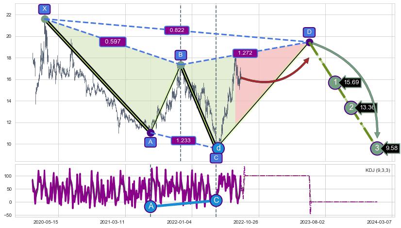 ➣ D点拟合预测价格19.46,距离最后交易收盘价格16.16相差 +20.44%