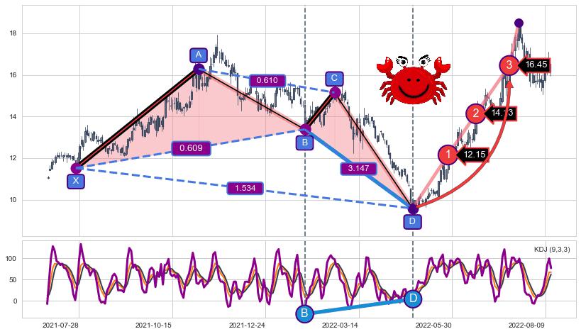 ➣ 已完成【螃蟹】形态起点X: 2021-07-26, 终点D: 2022-04-26, 共182交易日