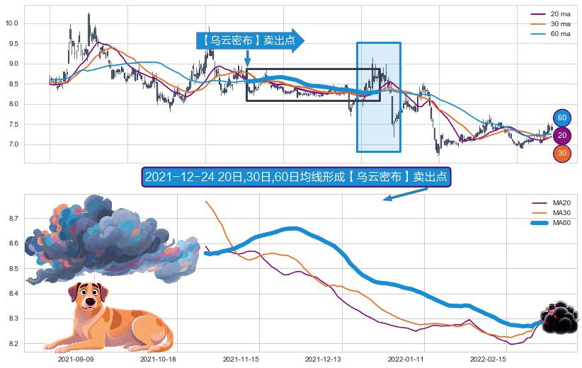 形态多维评估: ⚀ 2021-10-27日-2022-03-02日显现 20日-30日-60日均线 【乌云密布】卖出点 看空信号,后市看跌,卖出