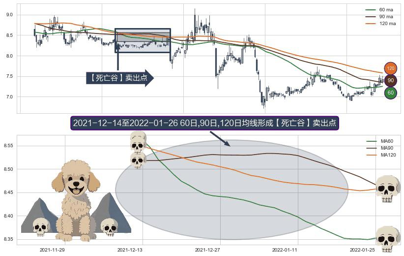 形态多维评估: ⚀ 2021-12-15-日至2022-01-26-日显现 60日-90日-120日均线 【死亡谷】卖出点 看空信号,后市看跌,卖出