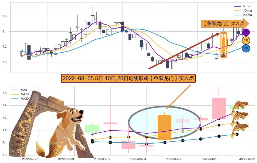 形态多维评估: ⚀ 2022-08-05日显现 5日-10日-20日均线 【鱼跃龙门】买入点 看多信号,后市看涨,买入
