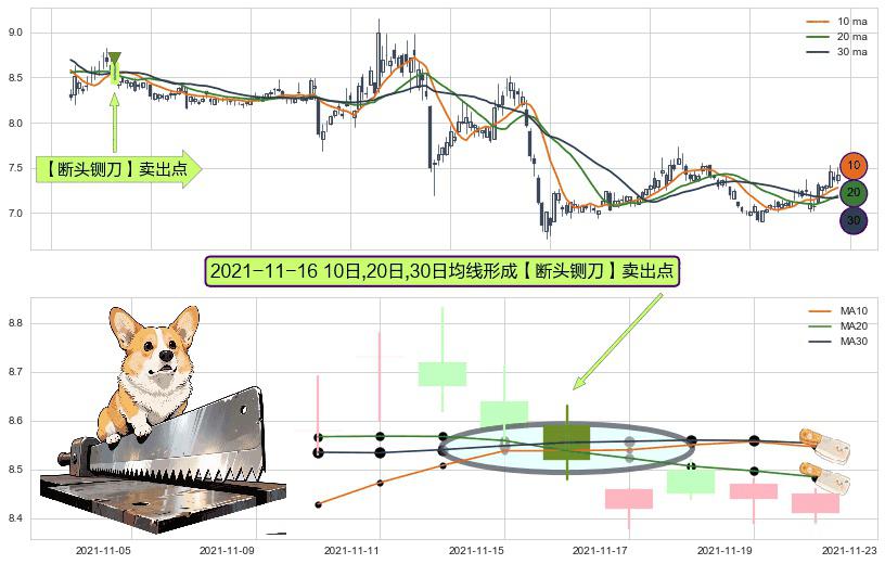 形态多维评估: ⚀ 2021-11-16日显现 10日-20日-30日均线 【断头铡刀】卖出点 看空信号,后市看跌,卖出