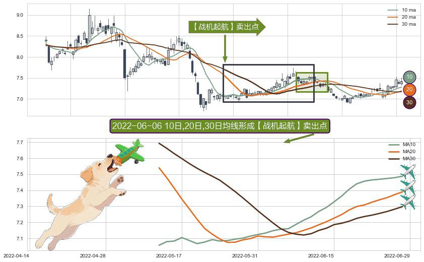 形态多维评估: ⚀ 2022-05-12日-2022-06-28日显现 10日-20日-30日均线 【战机起航】卖出点 看空信号,后市看跌,卖出