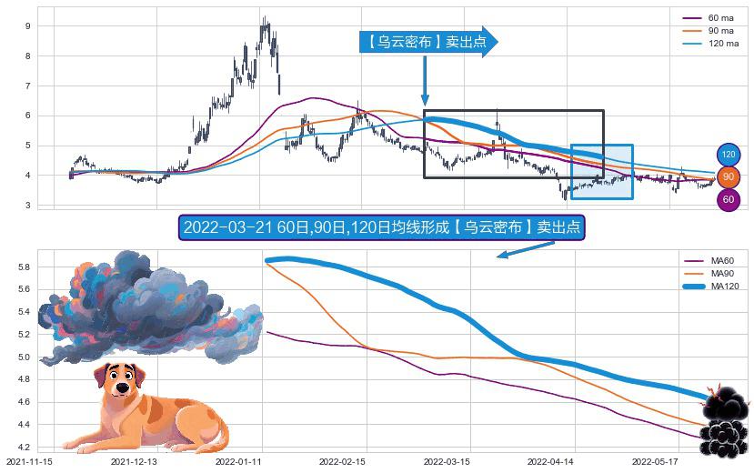 ⚀ 2022-01-12日-2022-05-26日显现 60日-90日-120日均线 【乌云密布】卖出点 看空信号,后市看跌,卖出