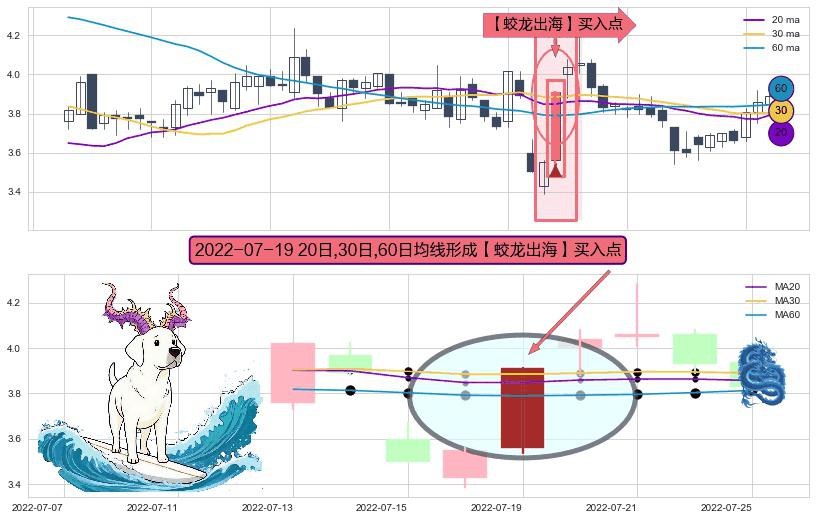 ⚀ 2022-07-19日显现 20日-30日-60日均线 【蛟龙出海】买入点 看多信号,后市看涨,买入