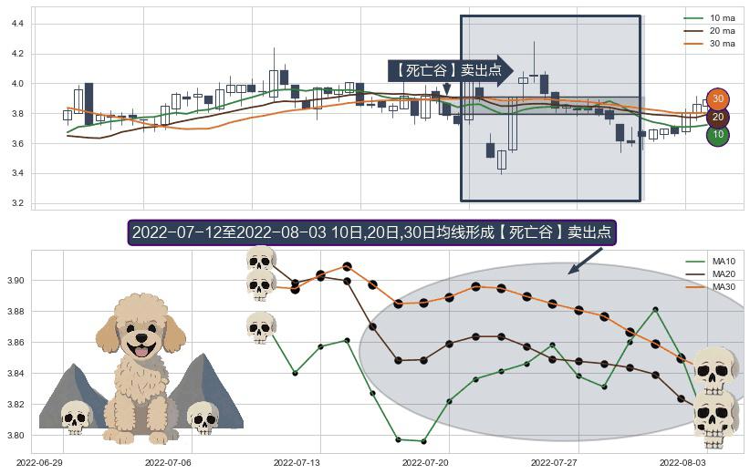 ⚀ 2022-07-13-日至2022-08-03-日显现 10日-20日-30日均线 【死亡谷】卖出点 看空信号,后市看跌,卖出