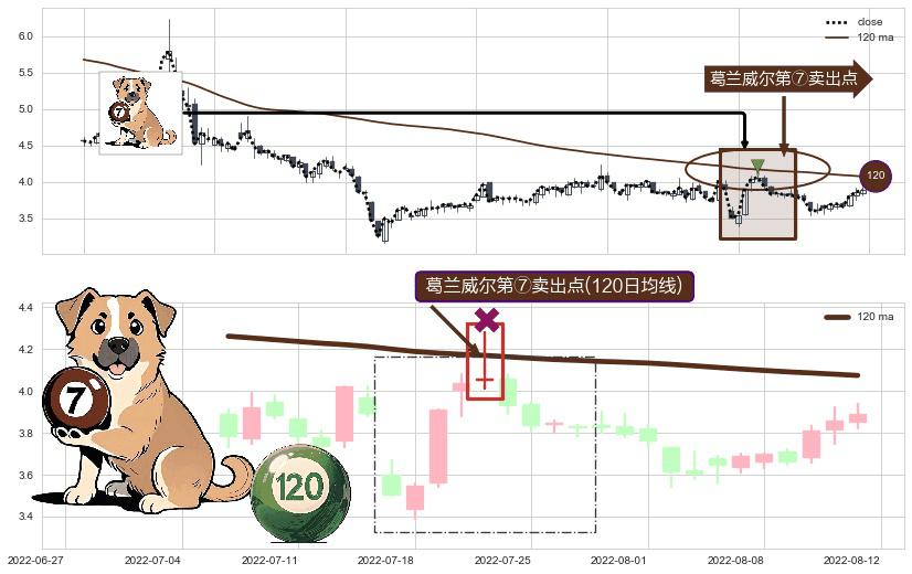 ⚀ 2022-07-21-日显现 葛兰威尔均线 120日均线 第⑦卖出点 下降趋势的中继信号,后市看跌,卖出信号