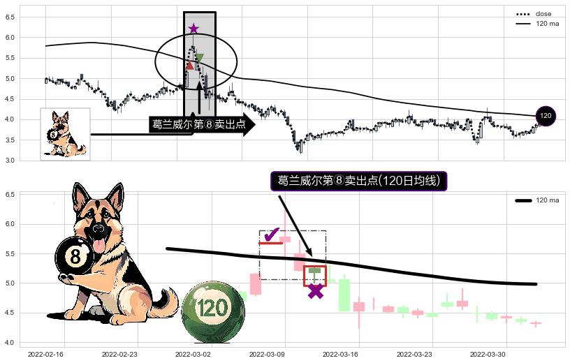 ⚀ 2022-03-11-日显现 葛兰威尔均线 120日均线 第⑧卖出点 下降趋势的中继信号,后市看跌,卖出信号