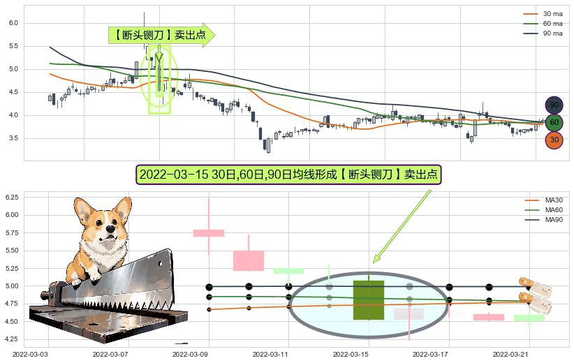 ⚀ 2022-03-15日显现 30日-60日-90日均线 【断头铡刀】卖出点 看空信号,后市看跌,卖出