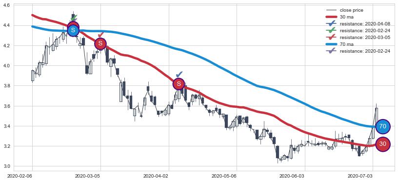 ➢ 最优均线组合共正确确认支撑阻力信号5处,正确确认率 71.43%