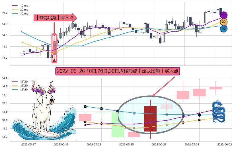 ⚀ 2022-05-26日显现 10日-20日-30日均线 【蛟龙出海】买入点 看多信号,后市看涨,买入