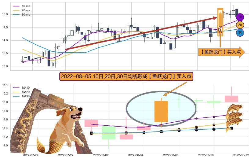 ⚀ 2022-08-05日显现 10日-20日-30日均线 【鱼跃龙门】买入点 看多信号,后市看涨,买入
