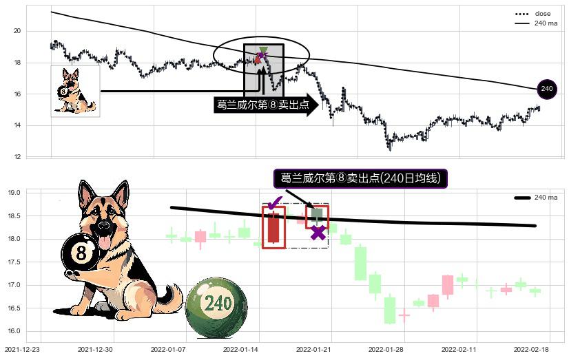 ⚀ 2022-01-20-日显现 葛兰威尔均线 240日均线 第⑧卖出点 下降趋势的中继信号,后市看跌,卖出信号