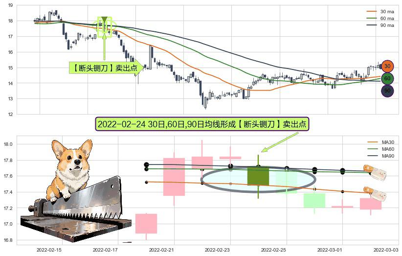 ⚀ 2022-02-24日显现 30日-60日-90日均线 【断头铡刀】卖出点 看空信号,后市看跌,卖出