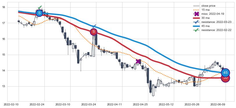 ⚂ 2022-01-17-日均线向上突破,2022-01-20-日重新下穿均线破位,均线阻力再次生效