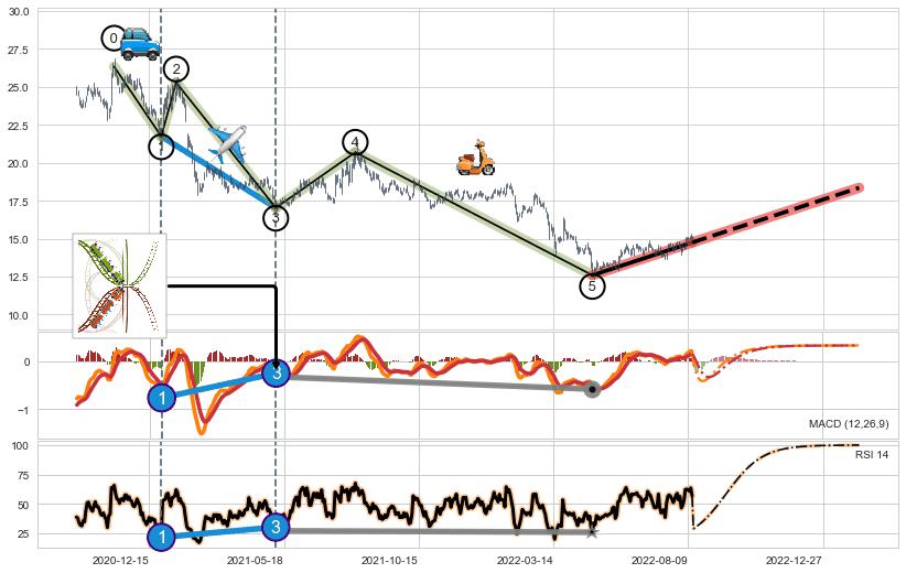 | 6 🅚:【高山滑雪】买入点 ➕ 🌊:波浪理论猜想下跌浪5已形成,猜想后续形成abc反弹上涨(均值回复) ☞ 看多信号 ⇥ 【均线】交织【图形】⇥ 综合量化分数: 73 | > |