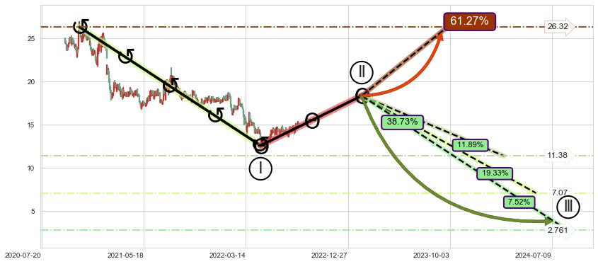 ➣ 大趋势循环浪继续向下概率38.73%