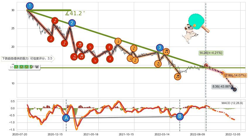 ➢ 预测:2022-10-18,【试探阻力】稳定目前下跌趋势的前提下,预测价格:12.80