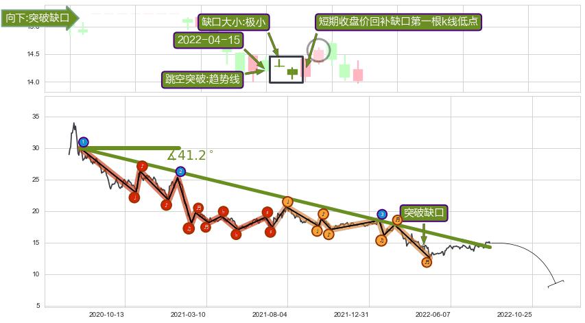 ➢ 2022-04-15形成:向下跳空【竭尽】缺口