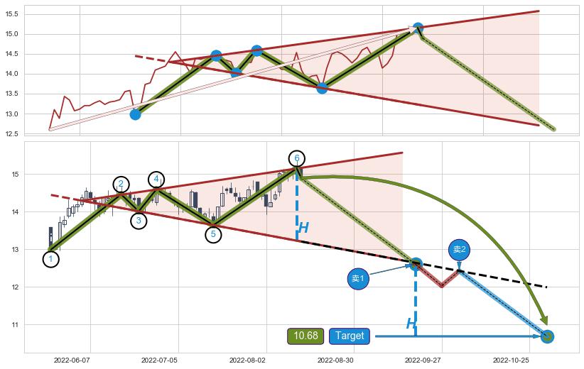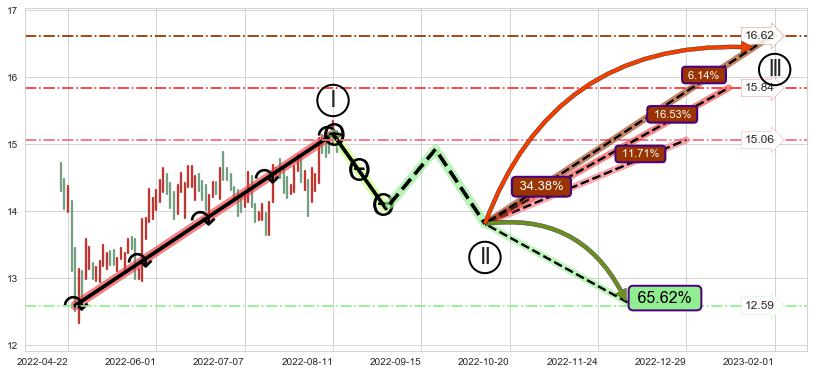 ➢ AI预测: 假定反转启动后, 第❷目标位置(2022-12-13, 14.17)