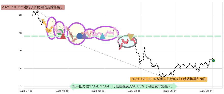 2021-08-30: 时域附近第一阻力位17.64持续的对下跌趋势进行阻拦,有效地放缓了下跌的速度。