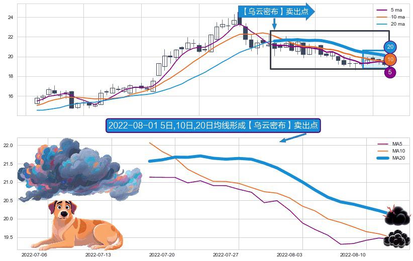 形态多维评估: ⚀ 2022-07-18日-2022-08-12日显现 5日-10日-20日均线 【乌云密布】卖出点 看空信号,后市看跌,卖出