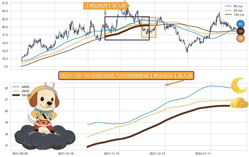 形态多维评估: ⚀ 2021-10-26日-2022-01-26日显现 60日-90日-120日均线 【烘云托月】买入点 看多信号,后市看涨,买入