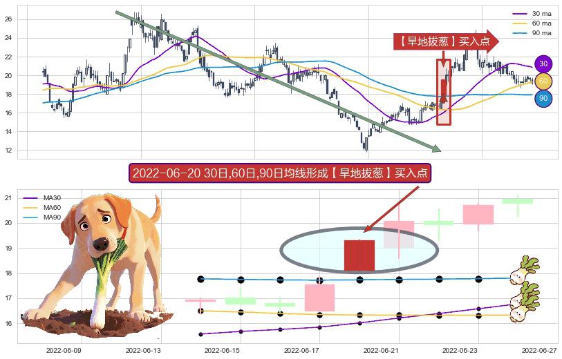 形态多维评估: ⚀ 2022-06-20日显现 30日-60日-90日均线 【旱地拔葱】买入点 看多信号,后市看涨,买入