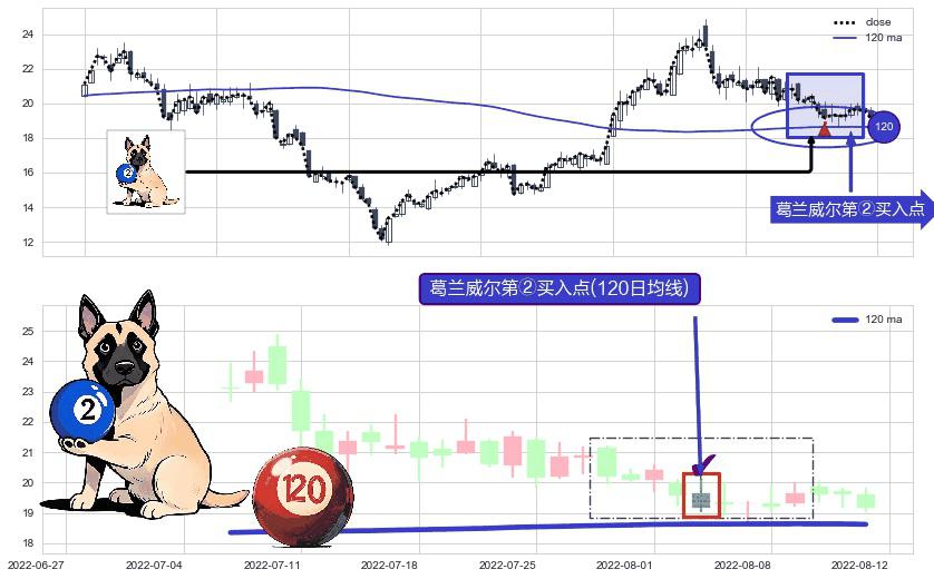 形态多维评估: ⚀ 2022-08-03-日显现 葛兰威尔均线 120日均线 第②买入点 上升趋势的中继信号,后市看涨,买进信号