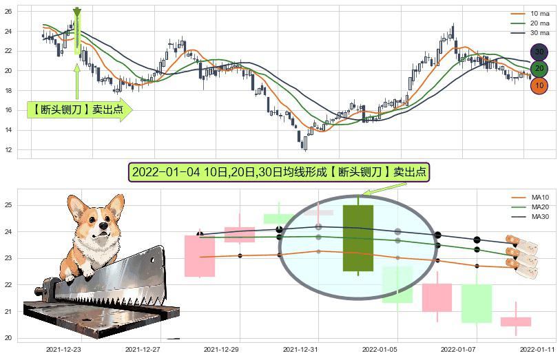 形态多维评估: ⚀ 2022-01-04日显现 10日-20日-30日均线 【断头铡刀】卖出点 看空信号,后市看跌,卖出