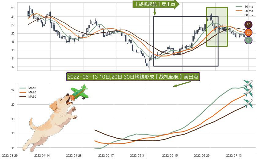 形态多维评估: ⚀ 2022-05-09日-2022-07-14日显现 10日-20日-30日均线 【战机起航】卖出点 看空信号,后市看跌,卖出