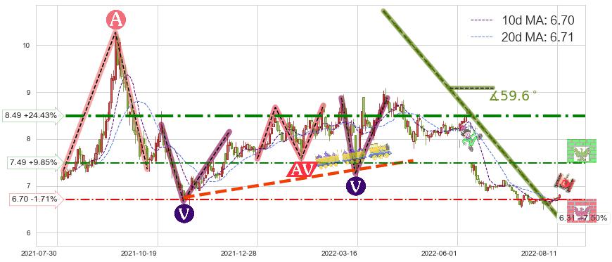 ➣ 【仅预测突破】最后价格:6.82与预测突破价格:6.49→【空间临近】后续最小【反转】第一目标价格→(2022-10-03: 4.76 )