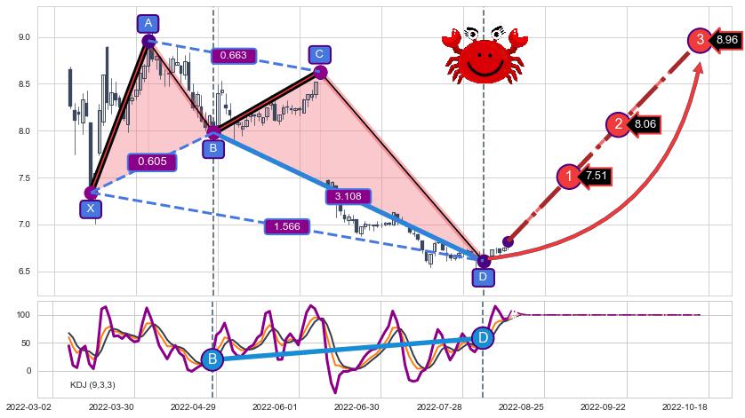 ➣ 已完成【螃蟹】形态起点X: 2022-03-15, 终点D: 2022-08-04, 共97交易日