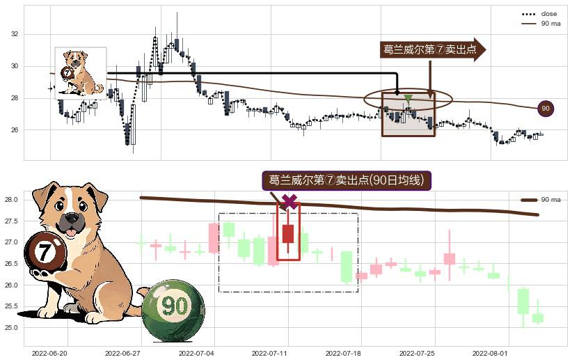 ⚀ 2022-07-11-日显现 葛兰威尔均线 90日均线 第⑦卖出点 下降趋势的中继信号,后市看跌,卖出信号