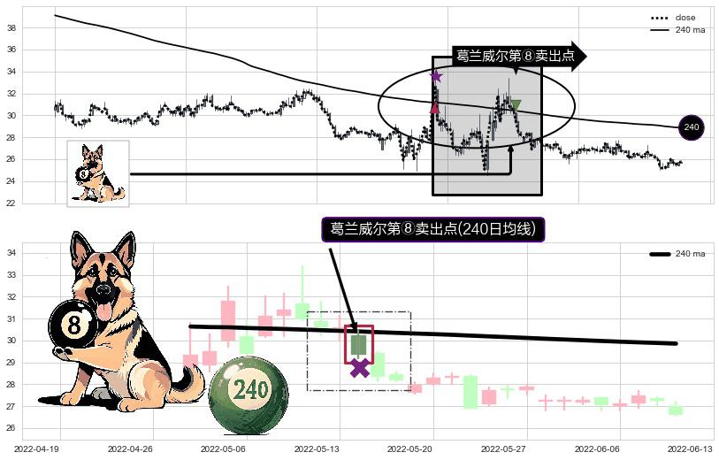 ⚀ 2022-05-16-日显现 葛兰威尔均线 240日均线 第⑧卖出点 下降趋势的中继信号,后市看跌,卖出信号