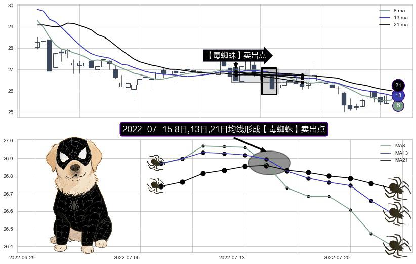 ⚀ 2022-07-15日显现 8日-13日-21日均线 【毒蜘蛛】卖出点 看空信号,后市看跌,卖出
