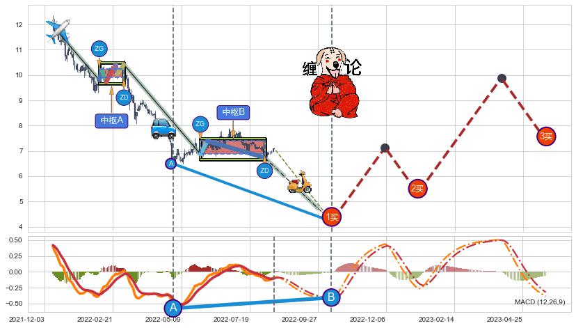 | 2 🅚:【高山滑雪】买入点 ➕ 🌊:波浪理论猜想下跌浪5已形成,猜想后续形成abc反弹上涨(均值回复) ☞ 看多信号 ⇥ 【均线】交织【图形】⇥ 综合量化分数: 51 | > |